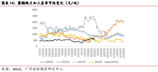 为应对夏季饮料生产旺季,饮料工厂通常会提前备货,向上游工厂采购瓶片,瓶片利润因此受到提振,具体来看,每年3-4月瓶片利润会季节性走高。
