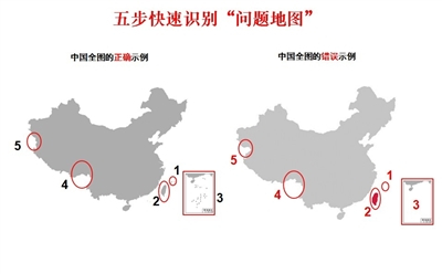 我们说的“问题地图”主要指存在危害国家主权统一、领土完整、安全和利益等严重问题的地图,“问题地图”的常见错误有漏绘钓鱼岛、赤尾屿、南海诸岛等重要岛屿,错误表示台湾省、错绘藏南地区和阿克赛钦地区国界线等。