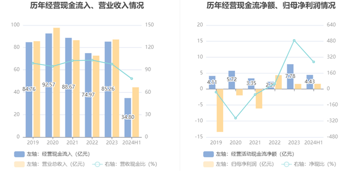 2024年上半年,公司营业收入现金比为78.29%,净现比为272.16%。