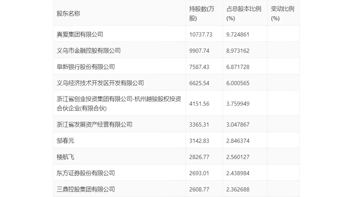半年报显示,2024年上半年末公司十大流通股东中,持股最多的为真爱集团有限公司,占比9.72%。十大流通股东名单相比2024年一季报维持不变。在具体持股比例上,楼航飞持股有所上升,东方证券股份有限公司持股有所下降。