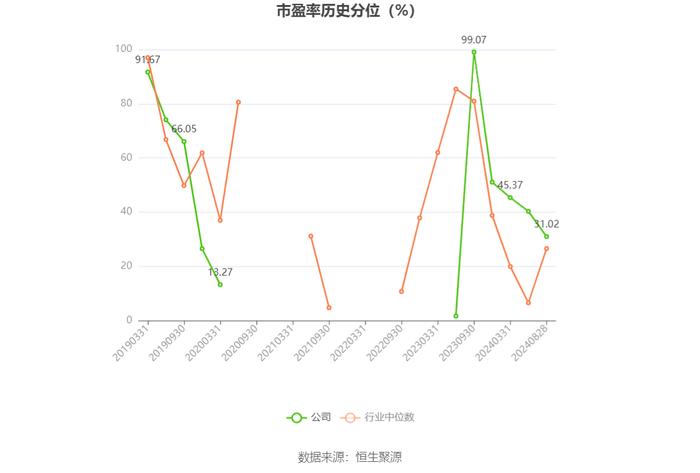 市盈率为负时,不显示当期分位数,会导致折线图中断。
