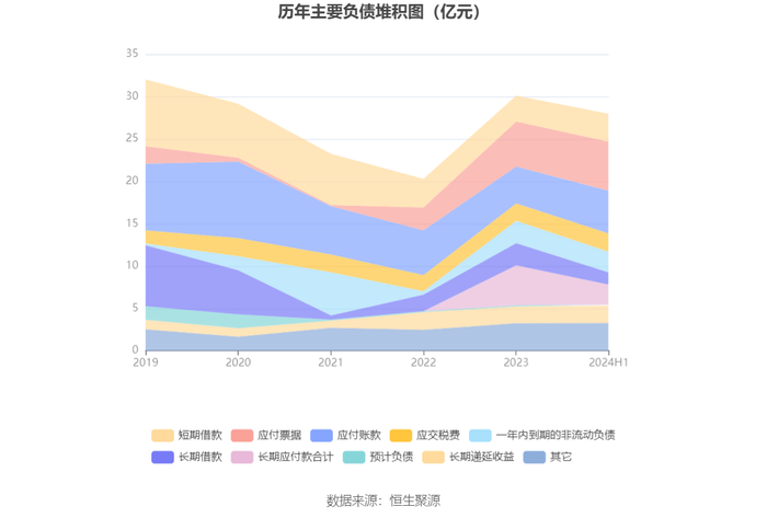 负债重大变化方面,截至2024年上半年末,公司长期应付款合计较上年末减少50.00%,占公司总资产比重下降3.70个百分点;长期借款较上年末减少44.45%,占公司总资产比重下降1.82个百分点;应付账款较上年末增加16.65%,占公司总资产比重上升1.21个百分点;应付票据较上年末增加8.83%,占公司总资产比重上升0.82个百分点。