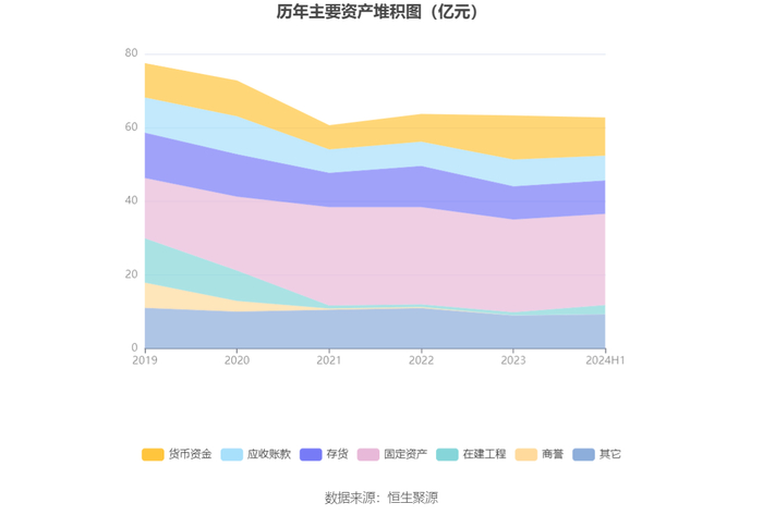 资产重大变化方面,截至2024年上半年末,公司其他应收款(含利息和股利)较上年末减少93.35%,占公司总资产比重下降2.93个百分点;在建工程较上年末增加214.65%,占公司总资产比重上升2.67个百分点;货币资金较上年末减少13.45%,占公司总资产比重下降2.39个百分点;预付款项较上年末增加128.67%,占公司总资产比重上升1.48个百分点。