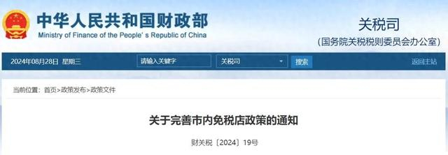 财政部、商务部、文化和旅游部、海关总署、税务总局近日印发《关于完善市内免税店政策的通知》(以下简称《通知》),明确自2024年10月1日起,按照《市内免税店管理暂行办法》(以下简称《办法》)规范市内免税店管理工作,促进市内免税店健康有序发展。
