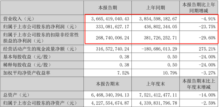 报告显示,三全公司上半年实现营业收入36.65亿元,同比下降4.91%;净利润3.33亿元,同比下降23.75%;扣非净利润2.69亿元,同比下降29.60%;基本每股收益0.38元。