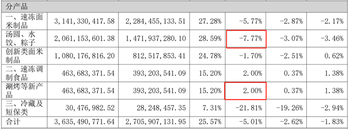 值得一提的是,三全涮烤等新产品实现营收4.64亿元,同比增长2.00%,是唯一营收实现同比增长的品类。