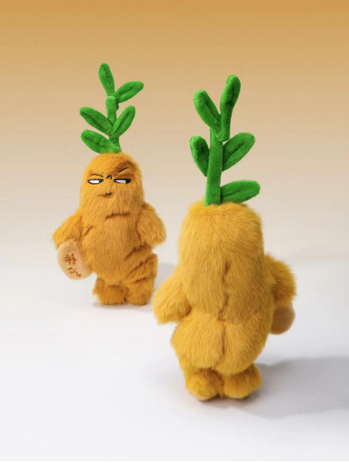 那些滴着“鼻涕”表情呆萌的“兰州软儿梨”、呲着门牙傻笑的“天水樱桃”、永远一脸震惊的“定西土豆”、气鼓鼓地拿着“ 补气”牌子的“陇西黄芪”……成为成年人们情感投射的对象。这并非毫无道理可言:在心理学上,毛绒玩具也被称为“舒适对象”,它能够承载更多的符号意义——更具有想象空间,为看起来混乱的生活提供一种连续的幸福感。