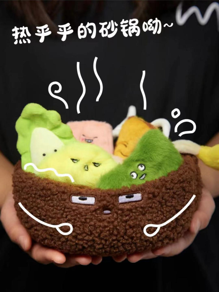 “谁点的砂锅好了!快来开吃咯~”甘肃省博物馆的社交平台账号上,列出了“兰州砂锅”的菜单。明明只是毛绒玩具,却被贴心地细分了“什锦砂锅”和“素砂锅”。