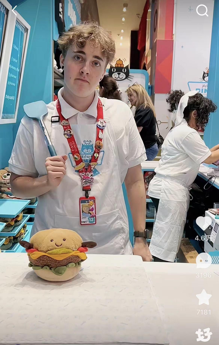 纽约时代广场的jELLYCAT餐厅,每一位工作人员都像是迪士尼电影中的人物,动作浮夸地为你做一份“汉堡”。在国内,许多商场、书店都有jELLYCAT的专柜。