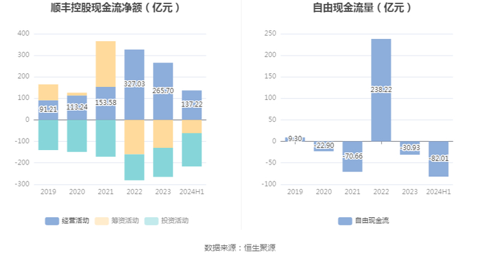2024年上半年,公司经营活动现金流净额为137.22亿元,同比下降0.74%;筹资活动现金流净额-61.82亿元,同比减少12.18亿元;投资活动现金流净额-154.45亿元,上年同期为-136.34亿元。