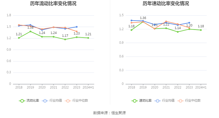 2024年上半年,公司流动比率为1.21,速动比率为1.18。