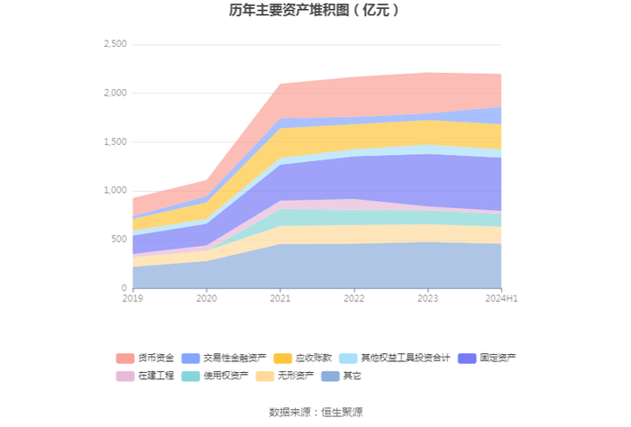 资产重大变化方面,截至2024年上半年末,公司交易性金融资产较上年末增加165.02%,占公司总资产比重上升5.14个百分点;货币资金较上年末减少20.22%,占公司总资产比重下降3.72个百分点;在建工程较上年末减少27.12%,占公司总资产比重下降0.48个百分点;其他权益工具投资合计较上年末减少12.07%,占公司总资产比重下降0.48个百分点。