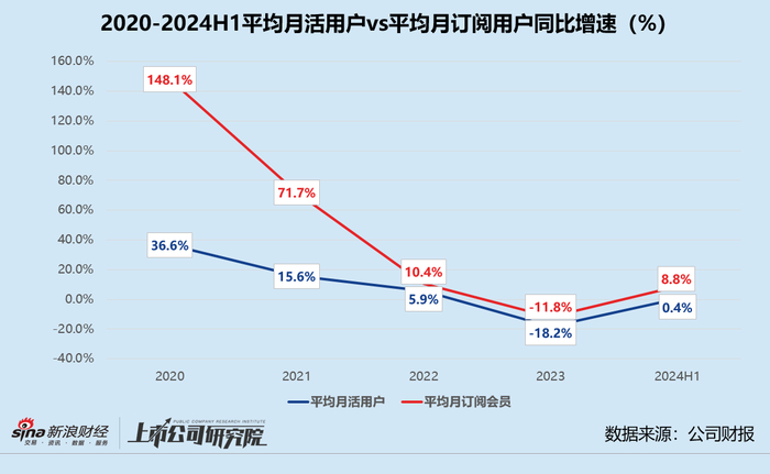 报告期内,Keep因品牌推广和获取用户而产生的销售及营销开支约为3.23亿元,同比增长25.8%。但实际效果却不尽如人意,平台平均月活跃用户只有2966万名,仅较2023年同期微增0.4%,与2023年末相比还少9.6万名;平均阅读订阅会员同比提高8.8%至328.2万名,也只恢复到了2021年末同等水平,和2022年上半年相比锐减38.3万名。