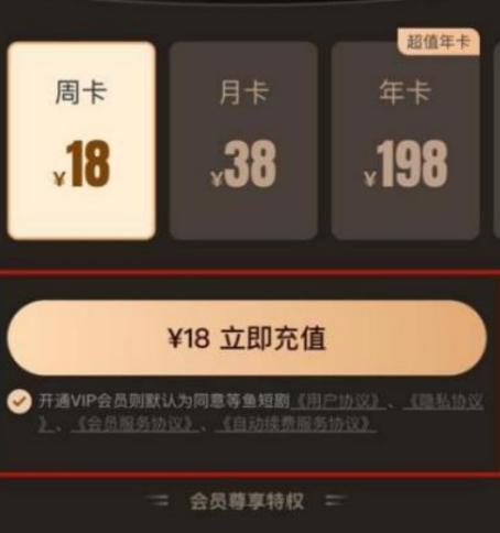 充值会员则直接明示会员权益,例如可观看的剧目数、观看期限等。