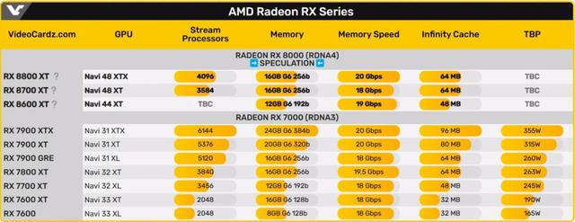 据AMD爆料人Capper透露,下一代RX 8000系列显卡的三款SKU将配备64兆和48兆的二级缓存,显示出与当前旗舰RX 7900 XT相似的规格配置。更为引人注目的是,RX 8600 XT将搭载12G显存,这一升级将彻底摆脱中端显卡长期以来的8G显存限制,有望在高分辨率游戏和复杂应用中展现出更加出色的性能表现。