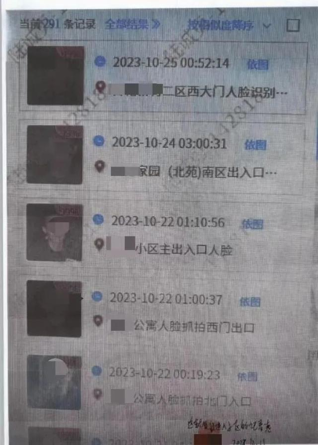 各大小区出现的相关被告人的人脸记录
