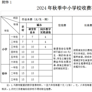 8月30日,湘潭市发改委、市教育局、市财政局、市市场监督管理局、市新闻出版局联合下发通知。明确2024年秋季学期全市中小学校(含幼儿园)教育收费管理有关事项。中小学收费范围农村义务教育。农村地区义务教育阶段学校根据学生自愿原则,除按规定向学生收取伙食费(含饭菜加热服务费或大米加工服务费)、作业本费、教辅材料费、课后服务费(见附件1)外,严禁收取其他任何费用。城市义务教育。城市义务教育阶段学校,除农村义务教育阶段学校可收取的费用外,还可在坚持学生自愿原则的前提下,向接受相关服务的学生收取住宿费(见附件1)、教辅材料费、校服费、补办证卡工本费、研学实践费、校外活动费。除此之外,不得另收其他费用。