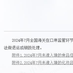 中国经济网北京8月29日讯 海关总署进出口食品安全局8月26日公布2024年7月全国未准入境食品化妆品信息。