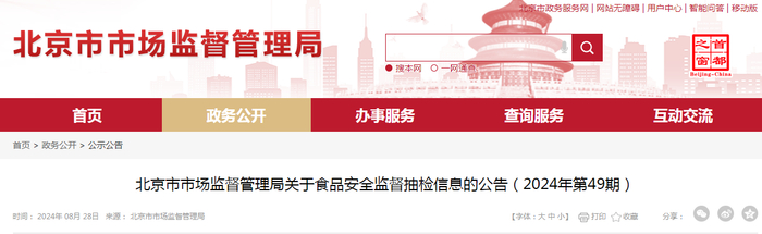 北京市市场监督管理局关于食品安全监督抽检信息的公告(2024年第49期)