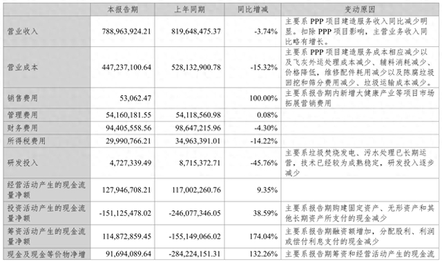 根据企业前一日披露的中期报告,今年上半年,圣元环保总营业收入微降3.74%,但扣除PPP项目建造收入后,主营业务收入实现正增长;净利润则显著增长11.04%至1.03亿元,归属于上市公司股东的扣除非经常性损益的净利润1.11亿元,同比增长36.47%,每股收益达0.3768元。