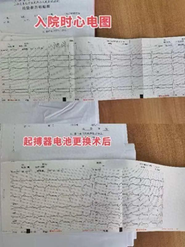 此刻已容不得片刻犹豫,考虑时间越久,患者心搏停跳的风险越大,起搏器的电池电量正在无限接近于零……刘化进当机立断,选择立即更换起搏器,同时与家属充分沟通,入院后当天立即进行临时起搏器保护下的永久双腔起搏器电池更换术,由曹华副主任主刀,手术干净利落,患者安安稳稳返回病房。术后心率上升至80次/分,抢救成功!