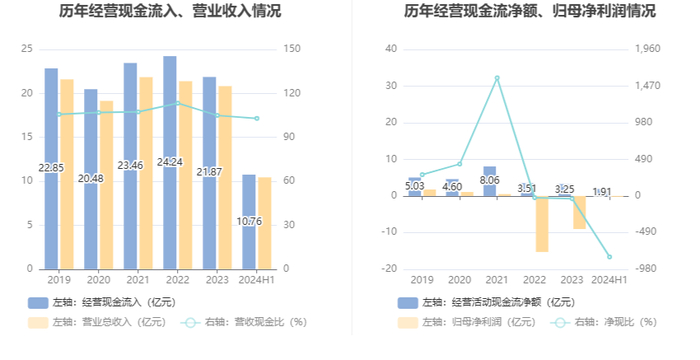 2024年上半年,公司营业收入现金比为102.95%,净现比为-815.54%。