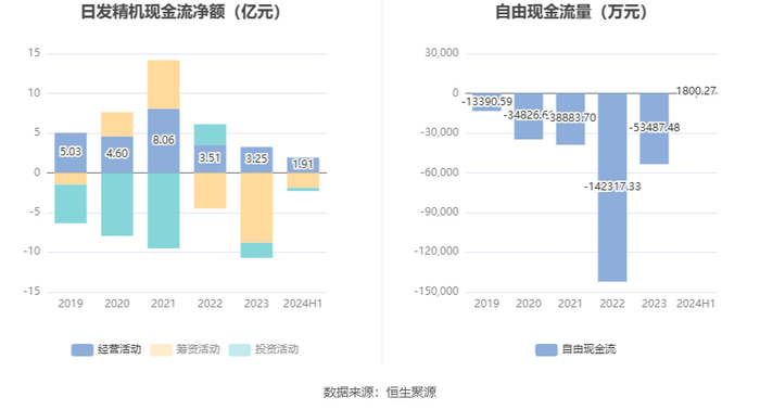 进一步统计发现,2024年上半年公司自由现金流为1800.27万元,相比上年同期下降72.98%。