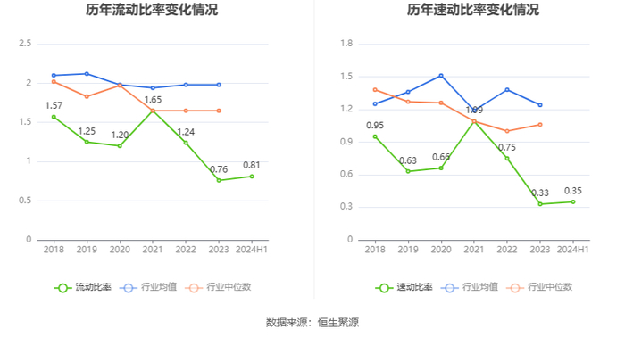 2024年上半年,公司流动比率为0.81,速动比率为0.35。