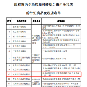 根据通知,现有北京、上海、青岛、大连、南京、重庆、合肥、南昌、昆明、杭州、郑州、哈尔滨等13家外汇商品免税店,自通知施行之日起3个月内转型为市内免税店,经海关验收合格后开始营业。截至目前,现有市内免税店和可转型为市内免税店的外汇商品免税店有19家。
