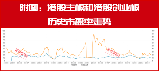 从基本面情况来看,港股市场确实也具有这样的吸引力。如从估值角度看,虽然港股今年上半年出现了一波像样的反弹,但最新数据显示,港股主板和港股创业板的市盈率仍然都处于历史的相对低位(见附图)。同时,从业绩角度看,港股市场的主要公司尤其是互联网龙头都在上半年实现了不俗的收益,如腾讯控股、阿里巴巴、美团、京东集团等都实现了双位数甚至以上的增长;金融、石油、电信运营商等板块的龙头则实现了稳健增长。