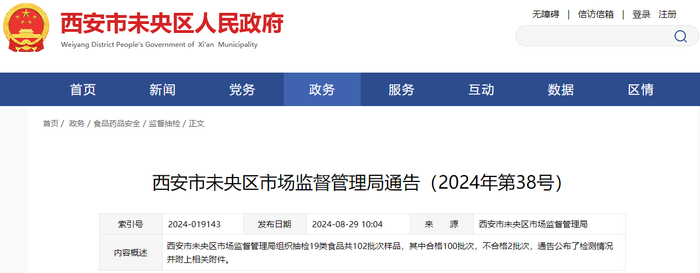 西安市未央区市场监督管理局通告(2024年第38号)