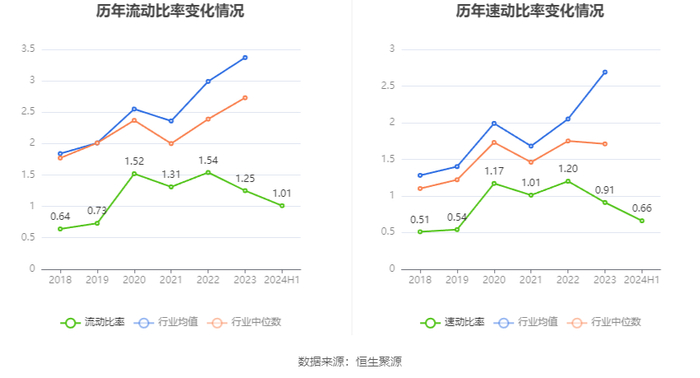 2024年上半年,公司流动比率为1.01,速动比率为0.66。