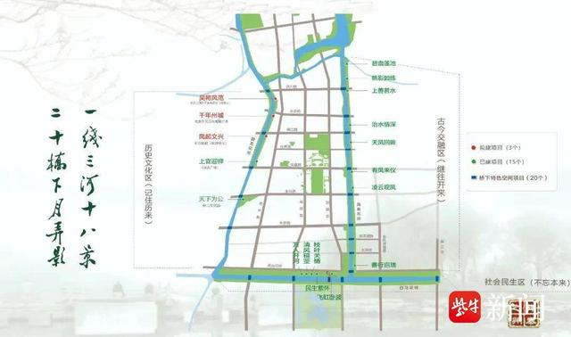 泰州“绿”动三河活力提升项目围绕“绿起来、连起来、动起来、游起来”,打通南官河、凤凰河、周山河与沿线道路断点,融入戏曲、盐税等泰州特色文化元素,沿岸打造18个主题文化节点,提升20处桥下空间,并设置坐凳、长椅、廊亭等城市家具以及健身器材、智能安防设施,推动全龄乐享城市生活。