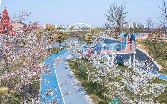 2022年淮安启动实施古黄河绿带开放连通工程,沿古黄河畔打造了一条40公里的生态绿道,无障碍贯通古淮河湿地公园、樱花园、桃花坞等沿线十余个生态公园,串珠成链,辐射43平方公里“十五分钟社区生活圈”,为市民、游客提供更加开放、绿色、舒适的休闲活动空间。