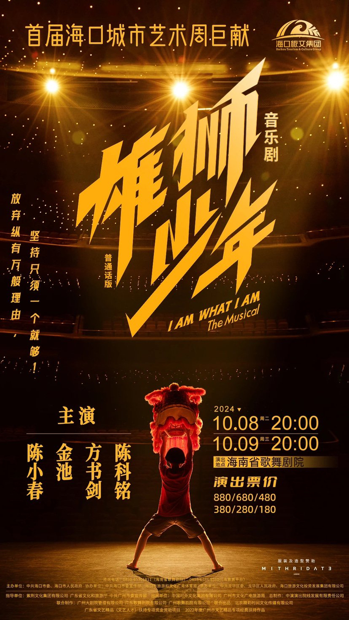 南海网8月29日消息(记者 张野)据“海口发布”微信公众号,由陈小春、金池主演的音乐剧《雄狮少年》普通话版将在首届海口城市艺术周期间登陆海南省歌舞剧院。