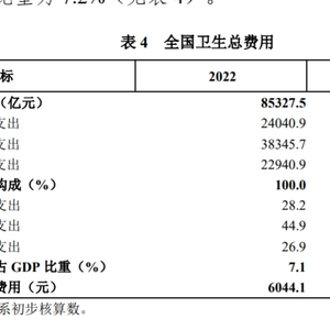 全国卫生总费用占GDP比重保持在7%以上,且继续增长。2023年全国卫生总费用占GDP比重为7.2%,比上一年(7.1%)增加0.1个百分点。