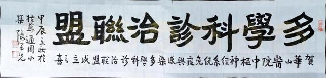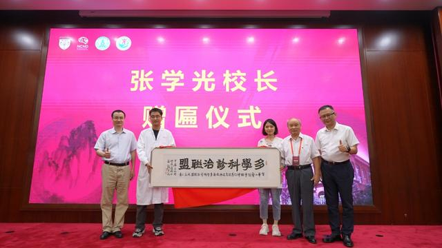 成立仪式上,赵曜对华山医院神经免疫和感染MDT诊治联盟成立提出勉励与要求;免疫学家、书法家张学光为祝贺MDT联盟成立,亲笔题写“多学科诊治联盟”,赵曜、陈向军共同为匾额揭幕。