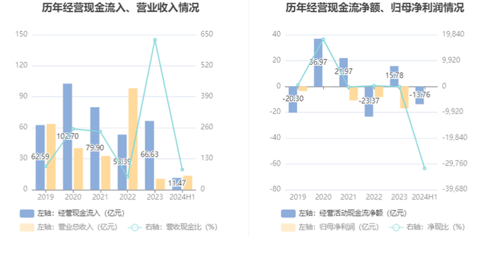 进一步统计发现,2024年上半年公司自由现金流为-20.58亿元,上年同期为14.39亿元。
