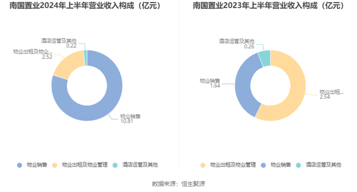 分产品来看,2024年上半年公司主营业务中,物业销售收入10.81亿元,同比增长559.62%,占营业收入的79.74%;物业出租及物业管理收入2.52亿元,同比下降0.57%,占营业收入的18.62%。