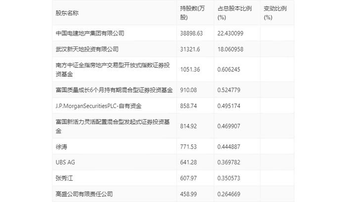 半年报显示,2024年上半年末公司十大流通股东中,新进股东为J.P.MorganSecuritiesPLC-自有资金、徐涛、UBS AG、张秀江、高盛公司有限责任公司,取代了一季度末的曾林森、毛韦明、陈凯、刘人萱、富国核心优势混合型发起式证券投资基金。在具体持股比例上,南方中证全指房地产交易型开放式指数证券投资基金、富国新活力灵活配置混合型发起式证券投资基金持股有所上升,富国质量成长6个月持有期混合型证券投资基金持股有所下降。