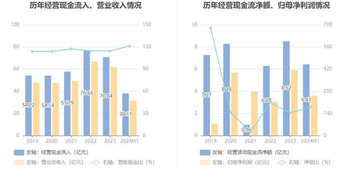 2024年上半年,公司营业收入现金比为121.34%,净现比为178.91%。