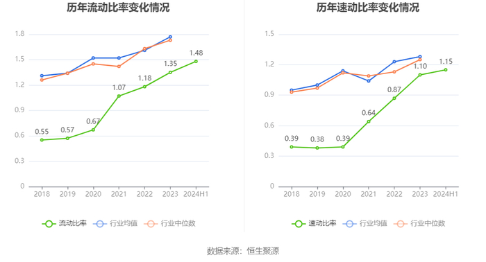 2024年上半年,公司流动比率为1.48,速动比率为1.15。