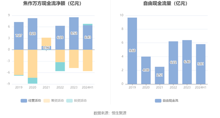进一步统计发现,2024年上半年公司自由现金流为5.81亿元,相比上年同期增长104070.53%。