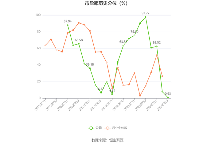 市盈率为负时,不显示当期分位数,会导致折线图中断。文章来源:中国证券报·中证网文章作者:杨宁原标题:焦作万方:2024年上半年净利润3.59亿元 同比增长172.51%