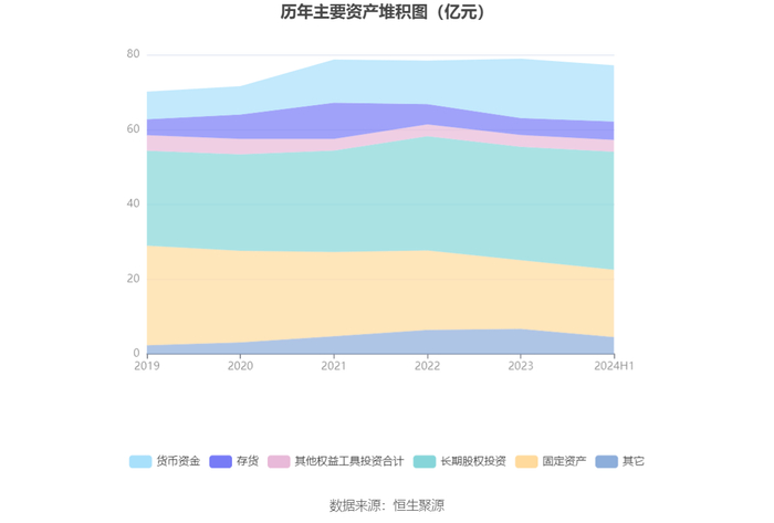 资产重大变化方面,截至2024年上半年末,公司长期股权投资较上年末增加4.04%,占公司总资产比重上升2.50个百分点;交易性金融资产较上年末减少66.31%,占公司总资产比重下降1.24个百分点;其他应收款(含利息和股利)较上年末减少34.74%,占公司总资产比重下降0.98个百分点;货币资金较上年末减少5.71%,占公司总资产比重下降0.70个百分点。