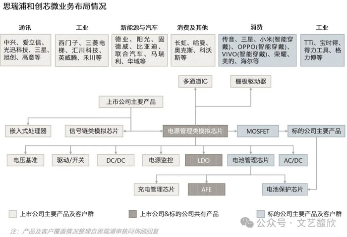 从业务角度看,思瑞浦和创芯微的优势领域和优势产品能够进行较好的互补,思瑞浦过往核心产品以信号链类模拟芯片为主,且下游应用主要为通讯(62%)、工业控制(24%)为主,消费电子仅占营业收入的11%(数据取自思瑞浦招股说明书,数据截至2019年),而创芯微营业产品为电池管理芯片和AC/DC芯片,主要应用于智能手机、智能穿戴、家电等消费电子领域,两者虽同属模拟芯片赛道,但是业务产品和覆盖终端客户存在一定差异性,客户群体的交叉性和产品的互补性能够帮助双方共同进行市场的拓展,产业协同性较强。对于创芯微来说,通过被思瑞浦收购解决了棘手的投资机构回购问题,得到了宝贵的上市公司平台支持,未来亦可依托上市公司渠道,拓展通讯、工业类市场,所以本次交易对于双方来说不仅是锦上添花,更有雪中送炭之意。
