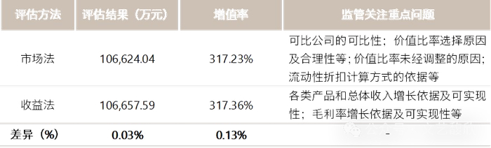 从评估结果来看,本次交易市场法与收益法下差异较小。本次交易问询中,对于市场法及收益法的关注重点具体如下: