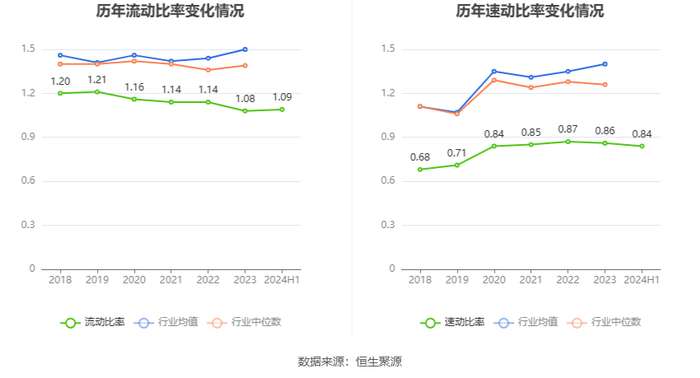 2024年上半年,公司流动比率为1.09,速动比率为0.84。