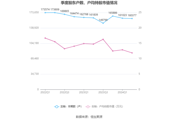 筹码集中度方面,截至2024年上半年末,公司股东总户数为16.04万户,较一季度末下降了646户,降幅0.40%;户均持股市值由一季度末的12.91万元下降至11.91万元,降幅为7.75%。