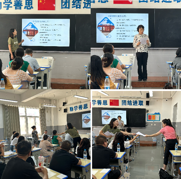 在教育的广阔天地中,新教师们宛如朝气蓬勃的新星,怀揣着梦想与热情,踏上了教书育人的征程。而如何提高教学成绩,成为了新教师们最为关注的课题之一。一场精心策划的新教师培训,就此展开。高中语文教研组长赵晓俊老师以自己丰富的教学经验通过内在和外在两个方面展开讨论。在培训中,新教师们深刻认识到团队合作的力量。与同事们相互交流、相互学习、相互支持,共同探讨教学中的问题和解决方案。参加教研活动,分享教学经验和心得,共同提高教学水平。同时,与家长保持密切联系,形成家校合力,共同促进学生的成长和进步。